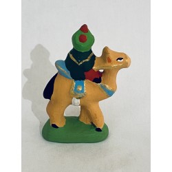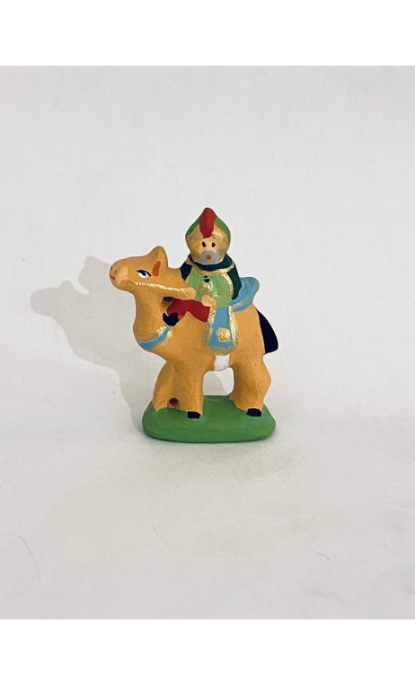 Melchior (roi vert) sur chameau, santon Filippi PUCES en terre crue, peint à la main.