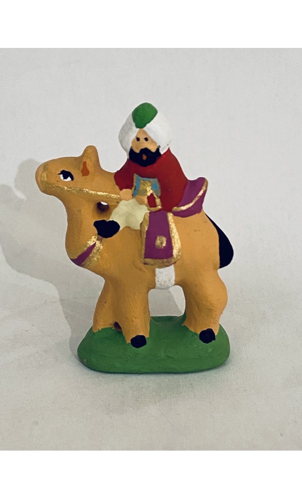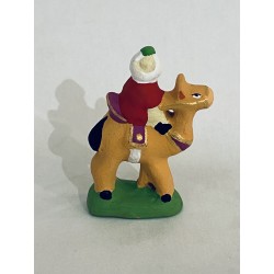 Gaspard (roi rouge) sur chameau, santon Filippi PUCES en terre crue, peint à la main.