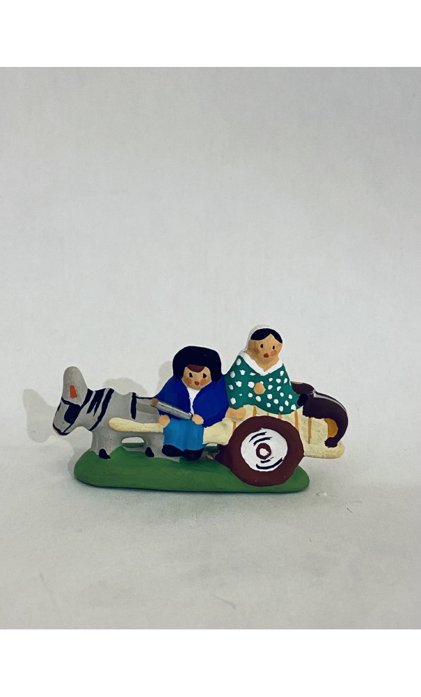 Carriole au baril, santon Filippi PUCES en terre crue, peint à la main.