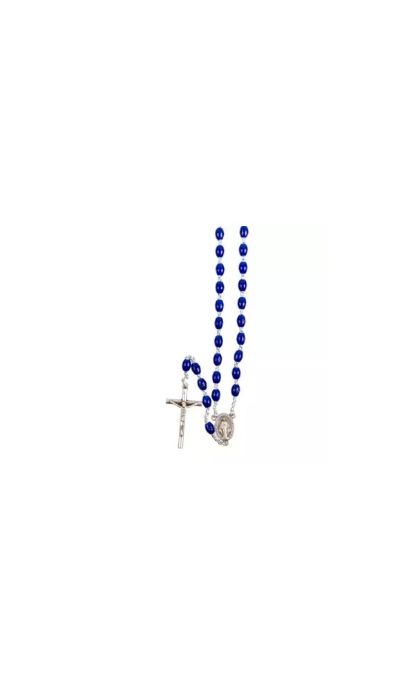 Chapelet indécrochable plastique bleu foncé perles grains de riz. Petit modèle.