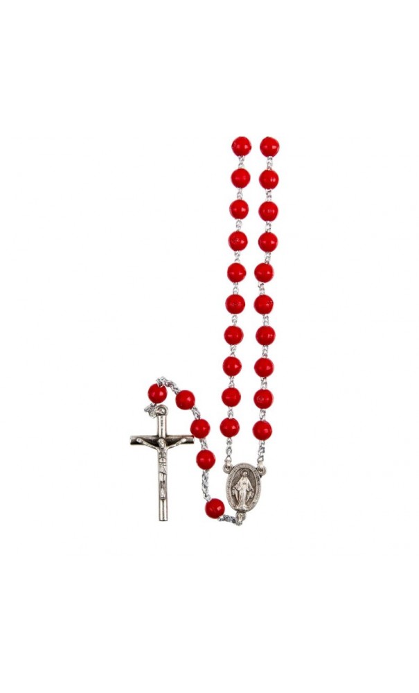 Chapelet indécrochable plastique rouge boules rondes.