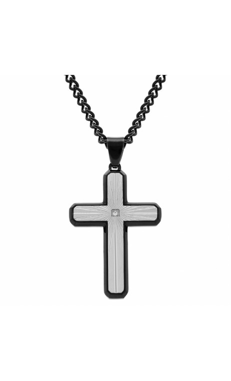 Ensemble chaîne et croix en acier noir, croix grise striée