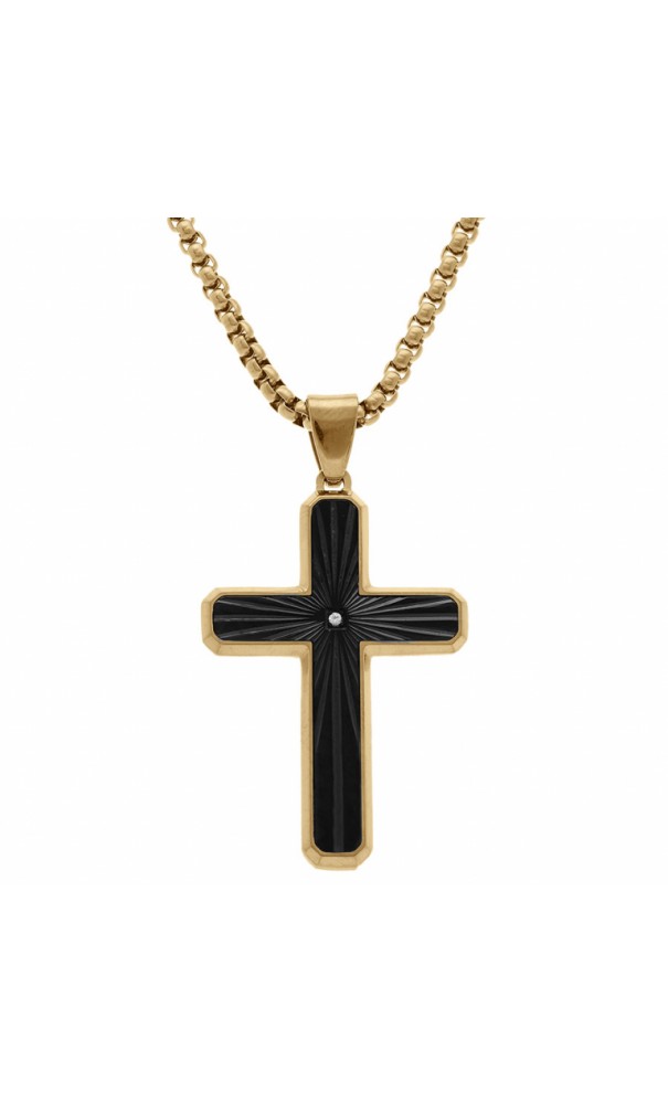 Ensemble chaîne et croix en acier doré, croix noire striée