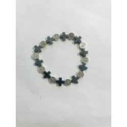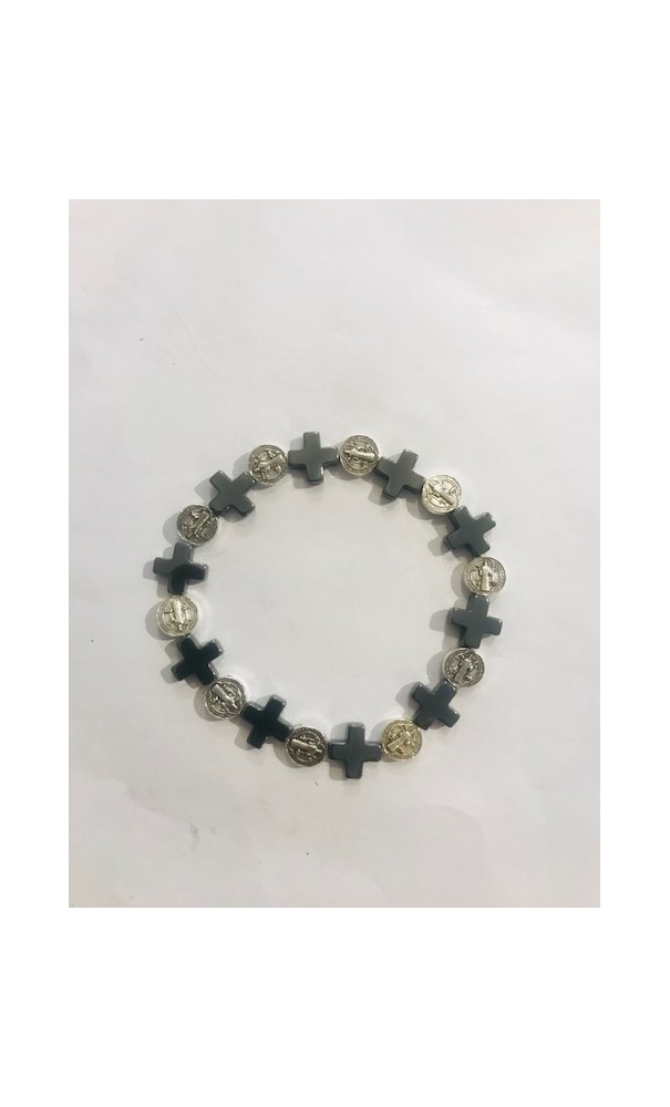 Bracelet dizainier élastique en hématite et médailles de Saint Benoît (pour homme)