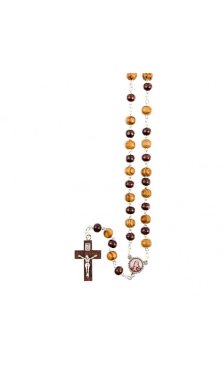 Chapelet en olivier et bois marron sur métal argenté