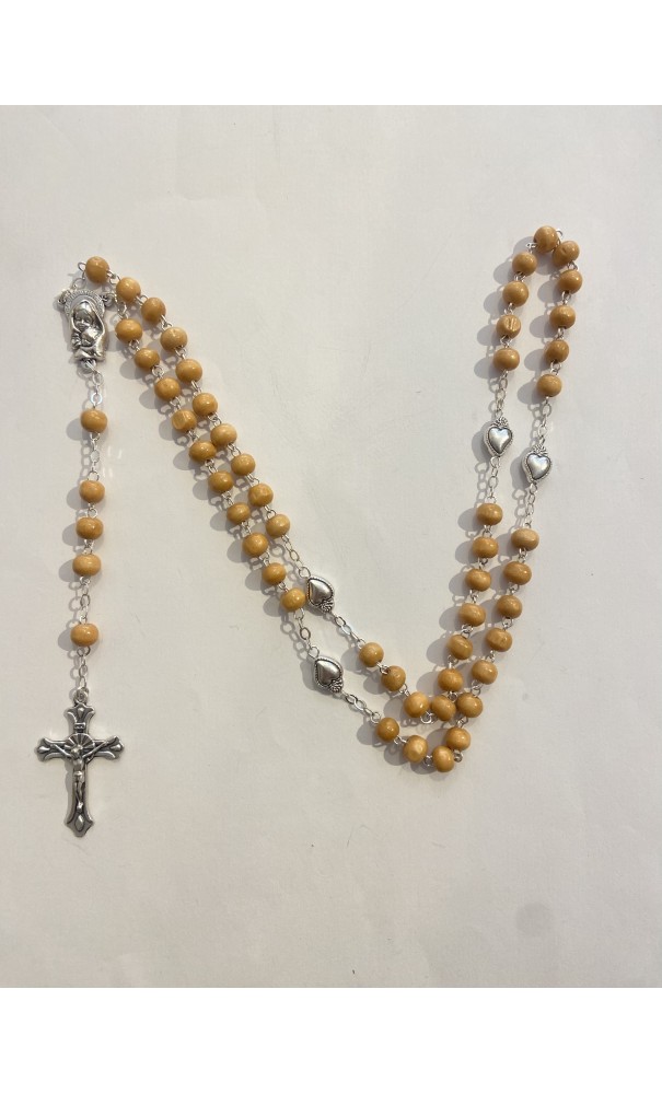 Chapelet en bois, Pater en coeur ex-voto, sur métal argenté