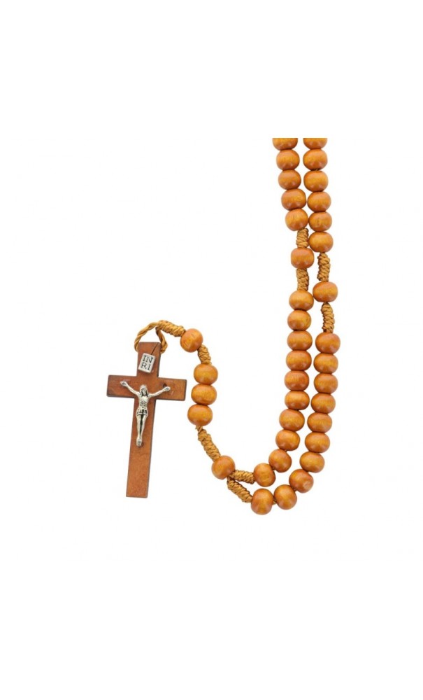 Chapelet en bois sur corde sans fermoir (croix avec Christ)