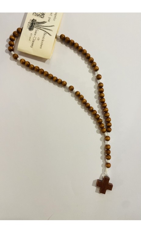 Chapelet bois naturel clair, croix grecque (Bénédictines de Saint-Thierry)