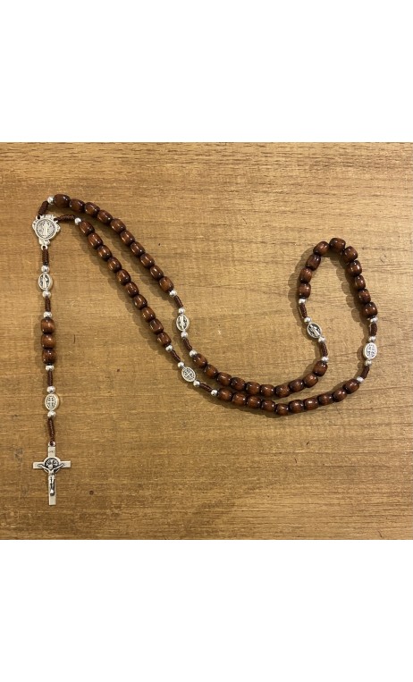 Chapelet St Benoît en bois marron foncé sur corde