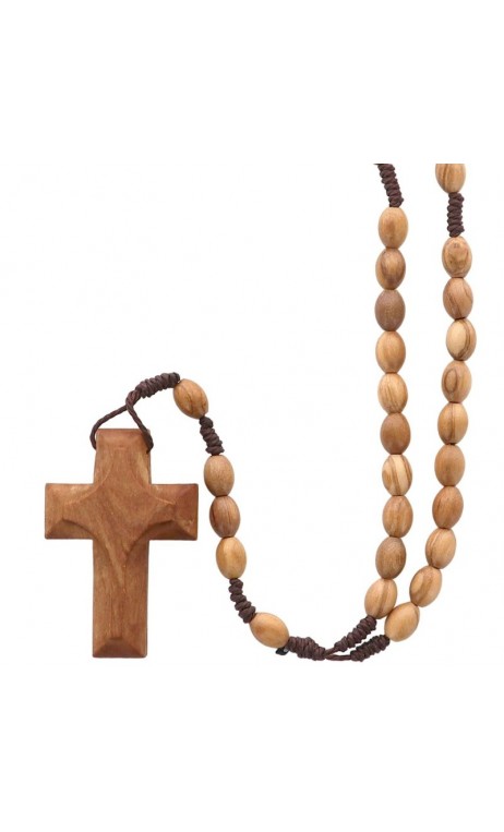 Chapelet en bois d'olivier sur corde sans fermoir