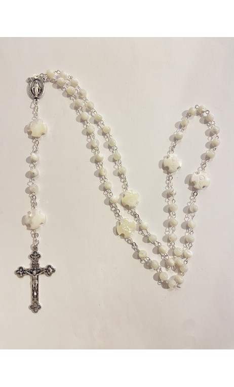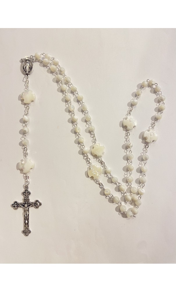 Chapelet nacre avec pater nacre forme de crois sur métal argenté