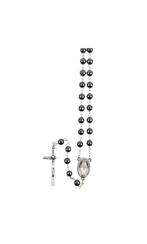 Chapelet en hématite sur chaîne métal argenté (grains ronds)
