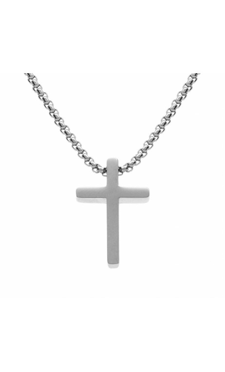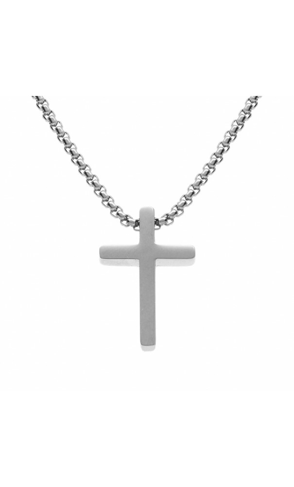 Collier acier blanc, croix simple sans Christ, chaîne jaseron
