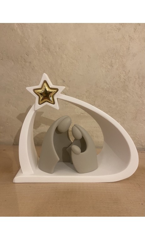 Crèche taupe, arche blanche et étoile dorée (Italie)