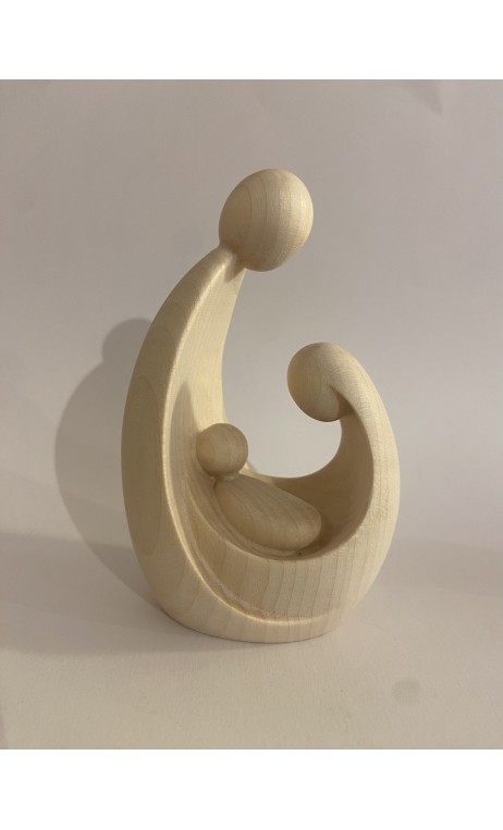 Statue Sainte Famille face à face stylisée en bois clair
