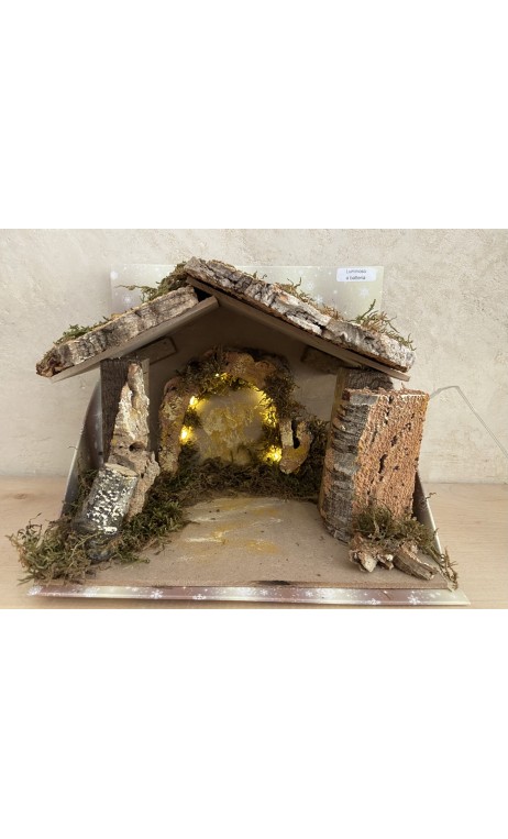 Etable-cabane en liège avec lumière (sur pile)