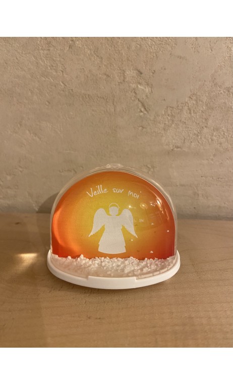 Boule à neige igloo ange gardien fond orange
