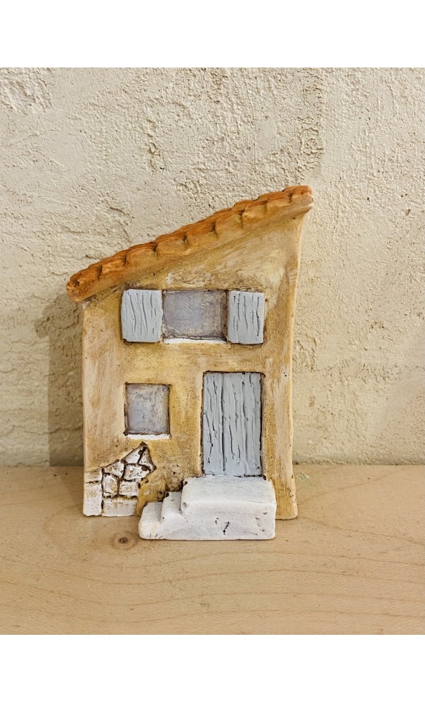 Maison de village toit en pente petit modèle (bleu), décor des santons Cavasse-Féry