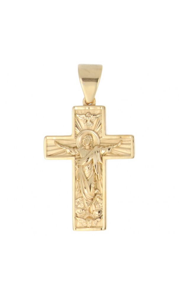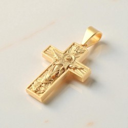 Croix du pèlerin avec Christ relief en acier doré