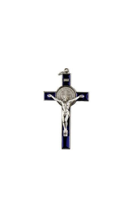 Croix saint Benoît métal et résine bleue foncée