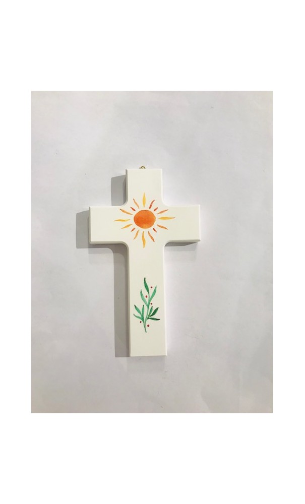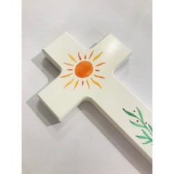 Croix en bois de hêtre peint (soleil)