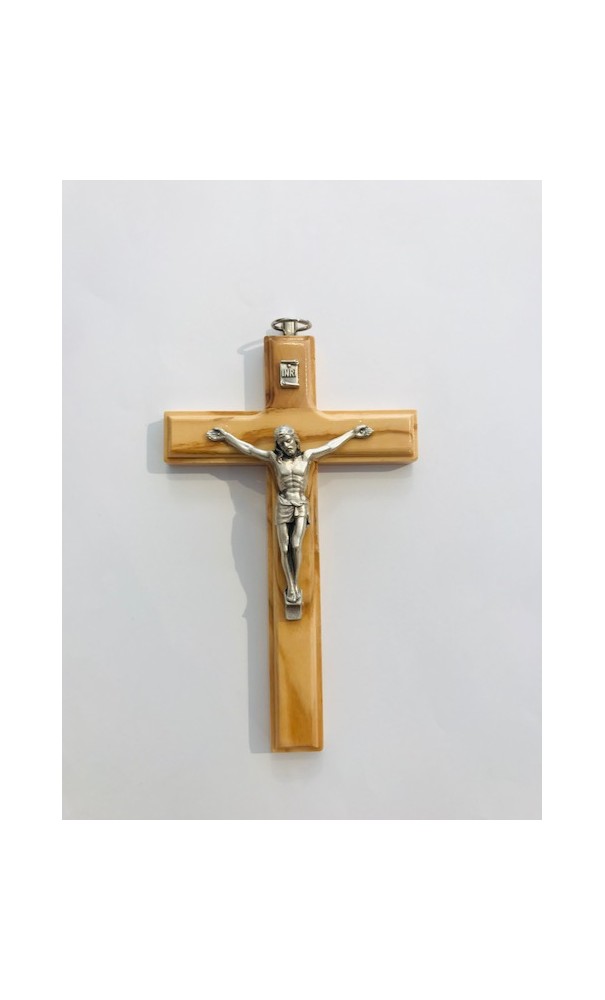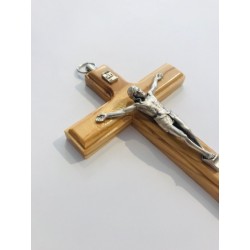 Crucifix en olivier avec Christ en métal argenté 16 cm