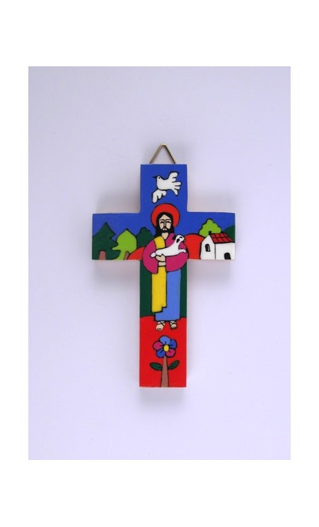 Croix murale enfantine Bon Pasteur multicolore 10cm (Salvador)