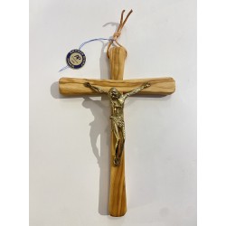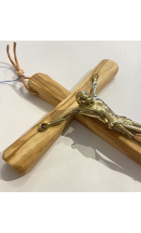 Croix murale en olivier, Christ en bronze (17cm)