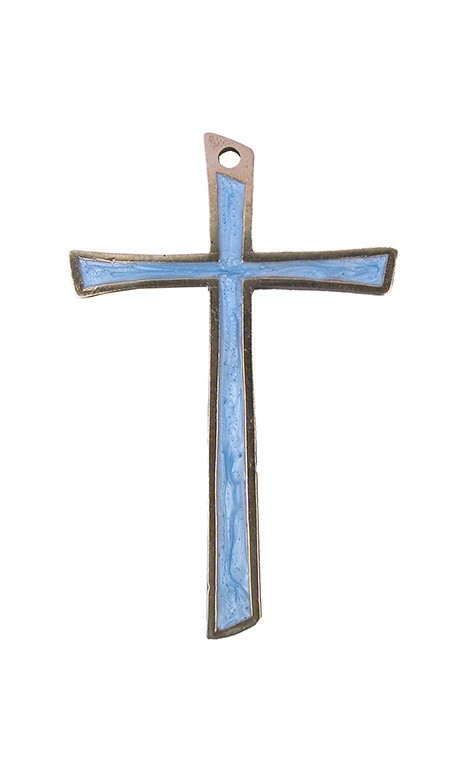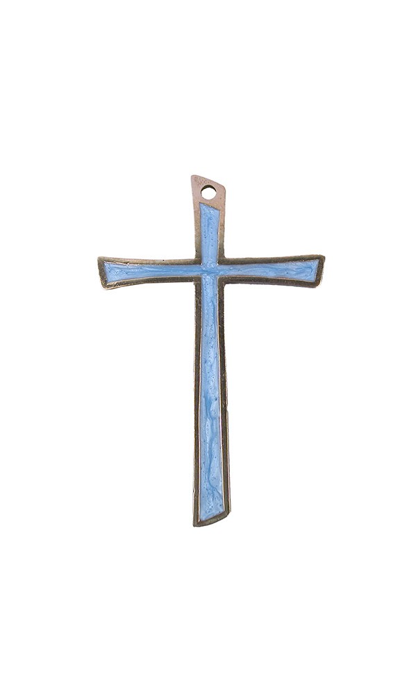 Croix biseautée en bronze et émaux bleu nacré (Sodarec)
