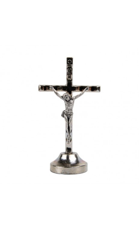 Croix métal argenté sur socle 7cm