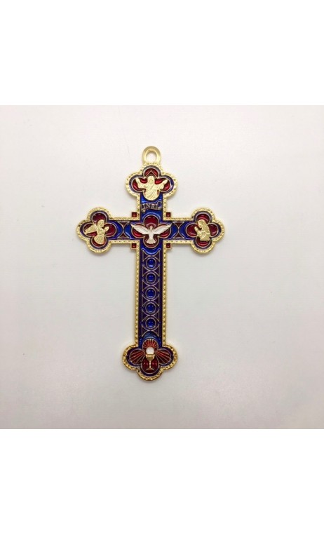 Croix baroque métal doré et émail bleu et rouge (petit modèle)