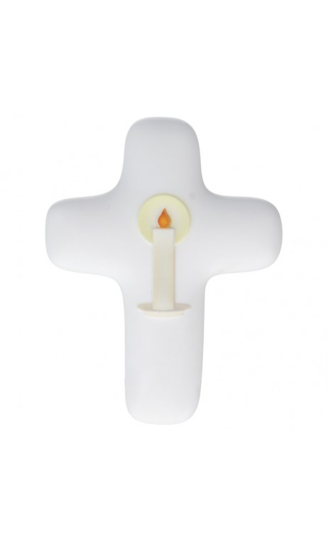 Croix en résine imitation albâtre avec lumière