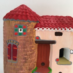 Maisons à la tour, décor Filippi en terre crue, peint à la main, à l'échelle des santons 3 cm.