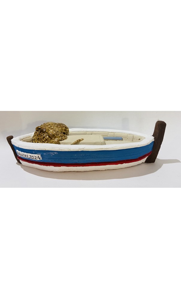 Bâteau pointu grand modèle bleu et rouge (Bandol), santons Richard (décor)