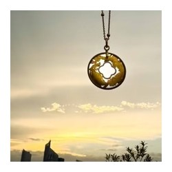 Médaille en plaqué or gold filled diamanté 20 mm, croix ajourée en argent, feuille d'or et de cuivre.