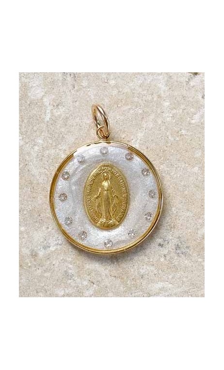 Médaille Miraculeuse couronnée d'étoiles (blanc nacré), Fleur Nabert Créations
