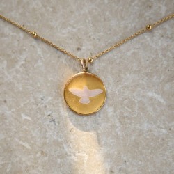 Médaille Esprit Saint en résine et feuille d'or ou argent.