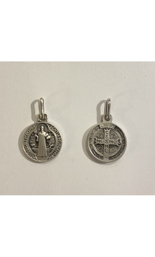 Au-dessus de la tête de saint Benoît on lit : Crux Sancti Patris Benedicti (La Croix du saint père Benoît). Autour de la bordure sont écrits les mots : "Que dans notre mort nous soyons fortifiés par sa présence". Sous ses pieds, les lettres : EX SM CASINO MDCCCLXX (Depuis le sacré Mont Cassin, 1880).