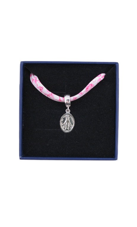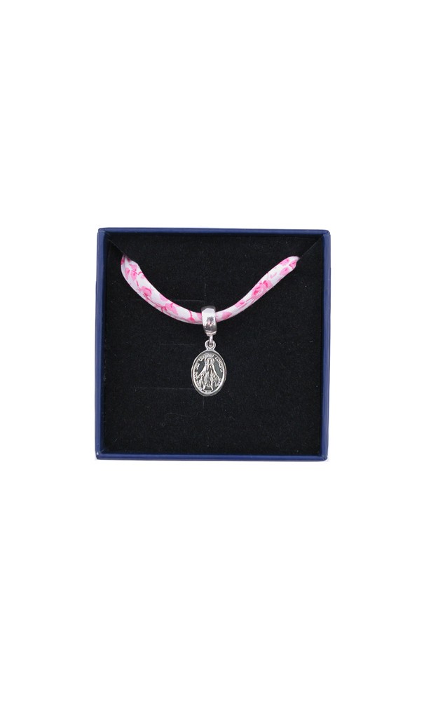 Collier liberty rose médaille Vierge Miraculeuse argent 11 mm