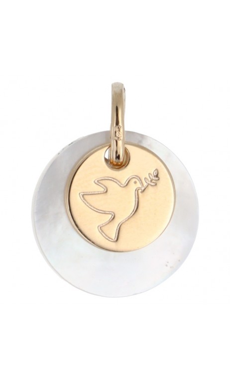 Médaille colombe stylisée plaqué-or sur nacre