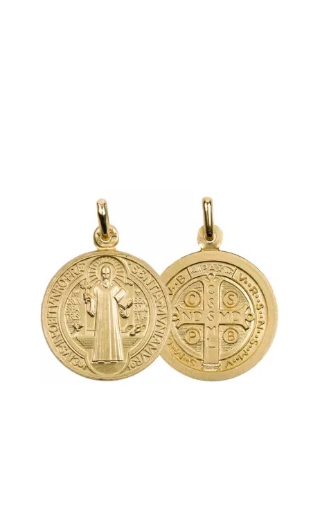 Medaille Saint Benoît plaqué-or 15 mm (nouevau modèle)