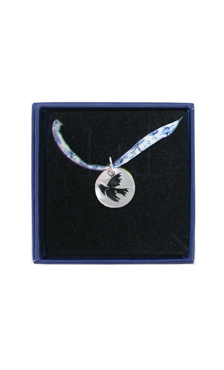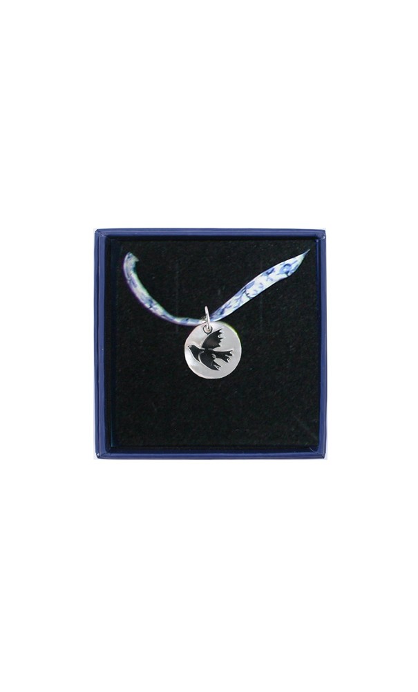 Collier liberty bleu colombe découpée argent 12 mm sur nacre