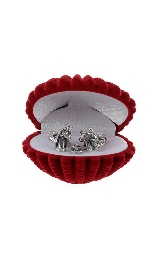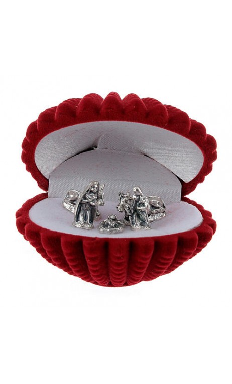Mini-crèche coquille coffret velours rouge