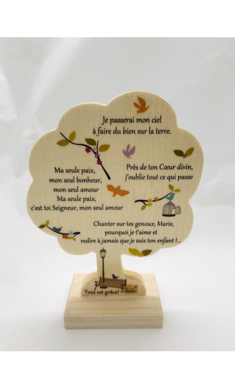 Plusieurs paroles et prières sur ce bel arbre (recto-verso): "Tout est grâce", "C'est la confiance et rien que la confiance qui doit nous conduire à l'amour", "Je passerai mon ciel à faire du bien sur la terre"...