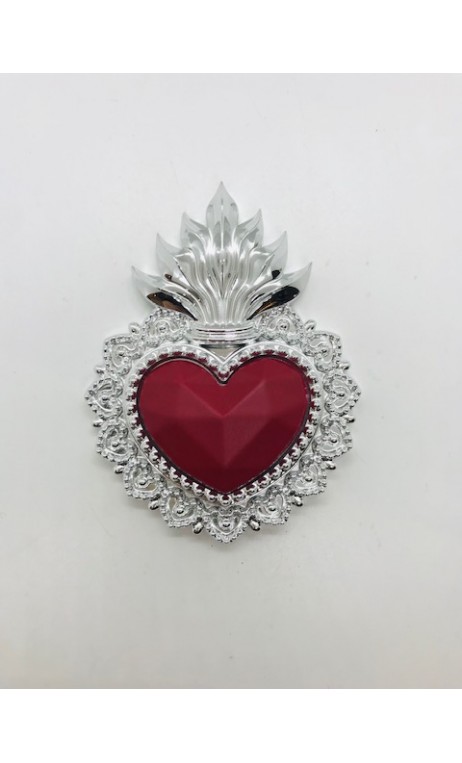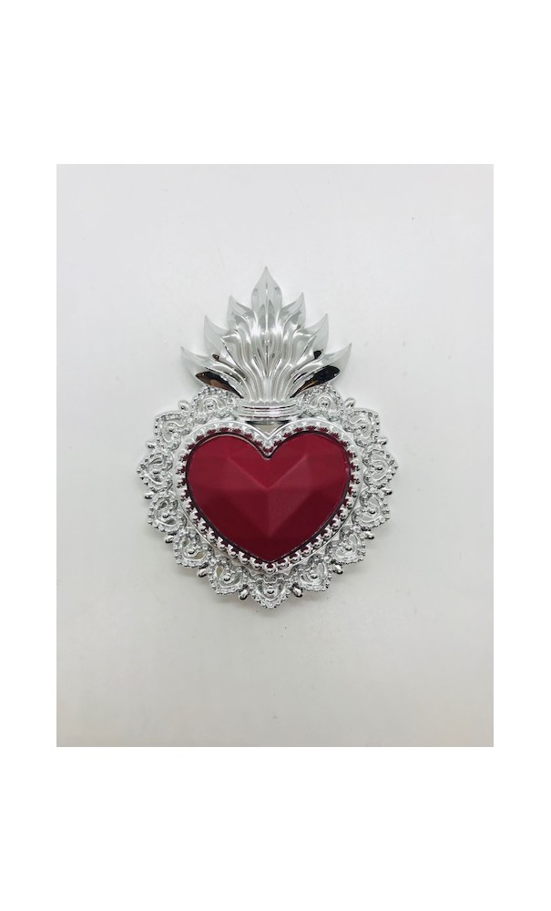 Ex-voto coeur rouge et argenté