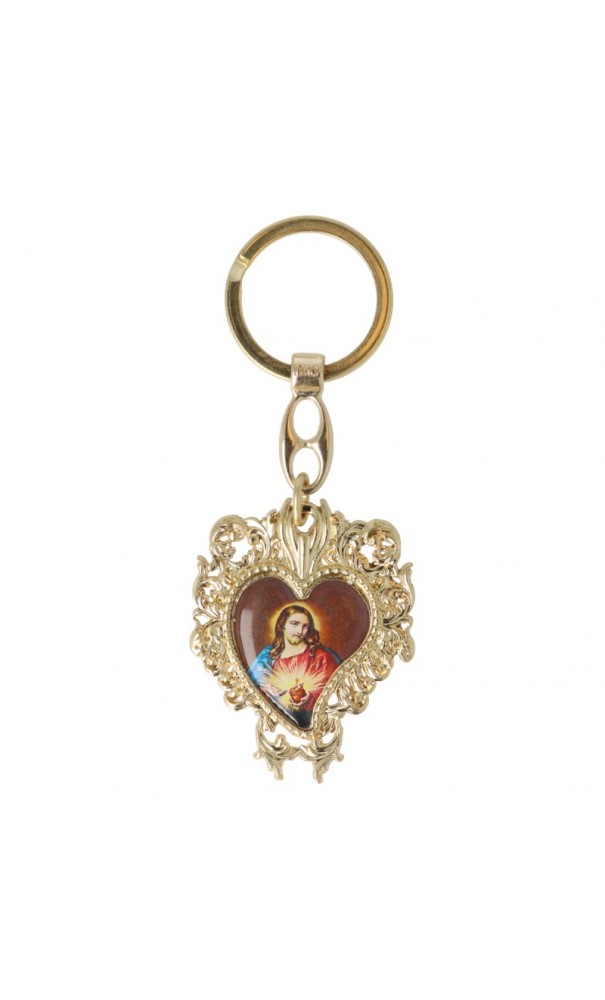 Porte-clé ex-voto métal doré Sacré Coeur couleur