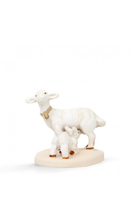 Brebis et agneau, santon Arterra blanc 12 cm