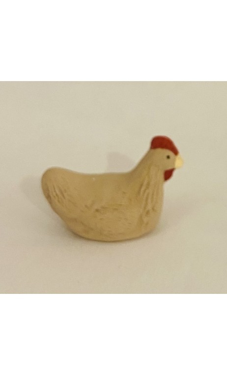 Poule beige qui couve, santon Cavasse-Féry 7cm