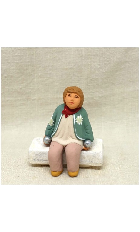 Jeune bouliste assis, santon Cavasse-Féry 7cm