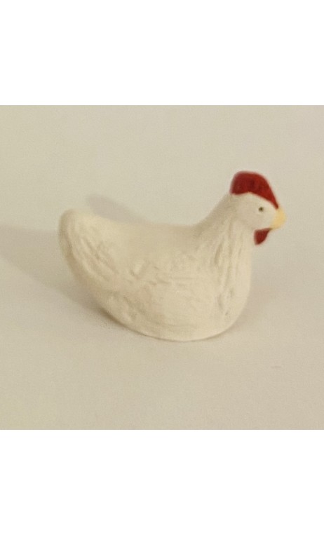 Poule blanche qui couve, santon Cavasse-Féry 7cm